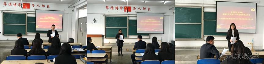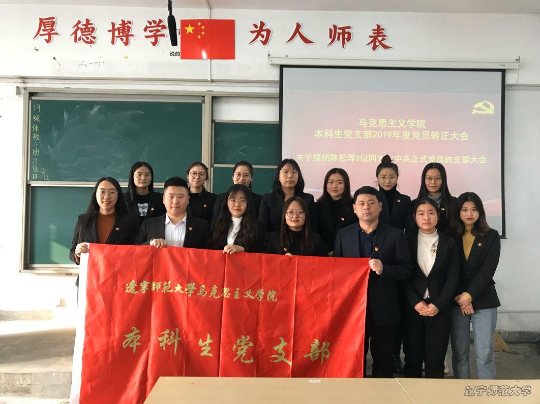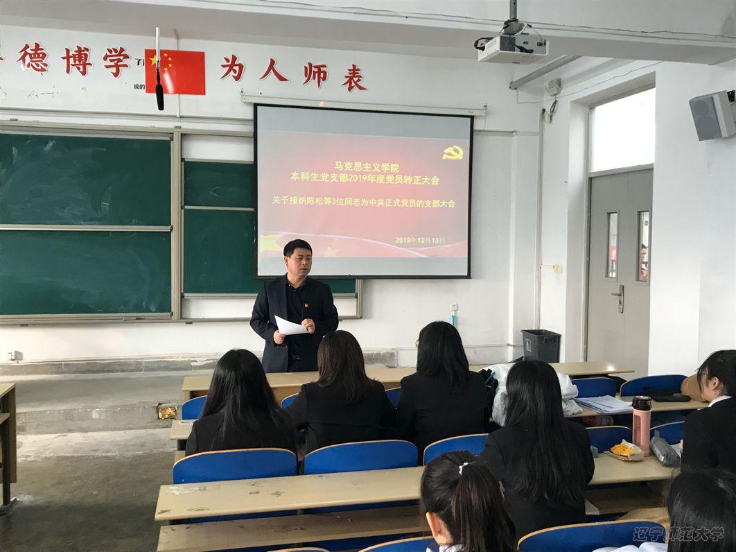 2019年12月13日上午,马克思主义学院本科生党支部在文科二号楼502教室召开预备党员转正大会,讨论了陈松等三名预备党员转正事宜。党支部书记王吉东老师主持会议,党支部成员参与会议。