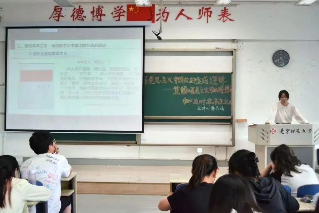 为提高学生专业理论素养,促进学生全面发展,2023年5月18日16:00,我院于文科2号楼401教室成功举办“研读经典著作,筑牢理想信念”系列活动(总27期):马克思主义中国化的生成逻辑——重读《星星之火,可以燎原》和《反对本本主义》。本次讲座特邀马克思主义学院韩晶晶老师主讲,马克思主义学院2021级、2022级本科生参加。