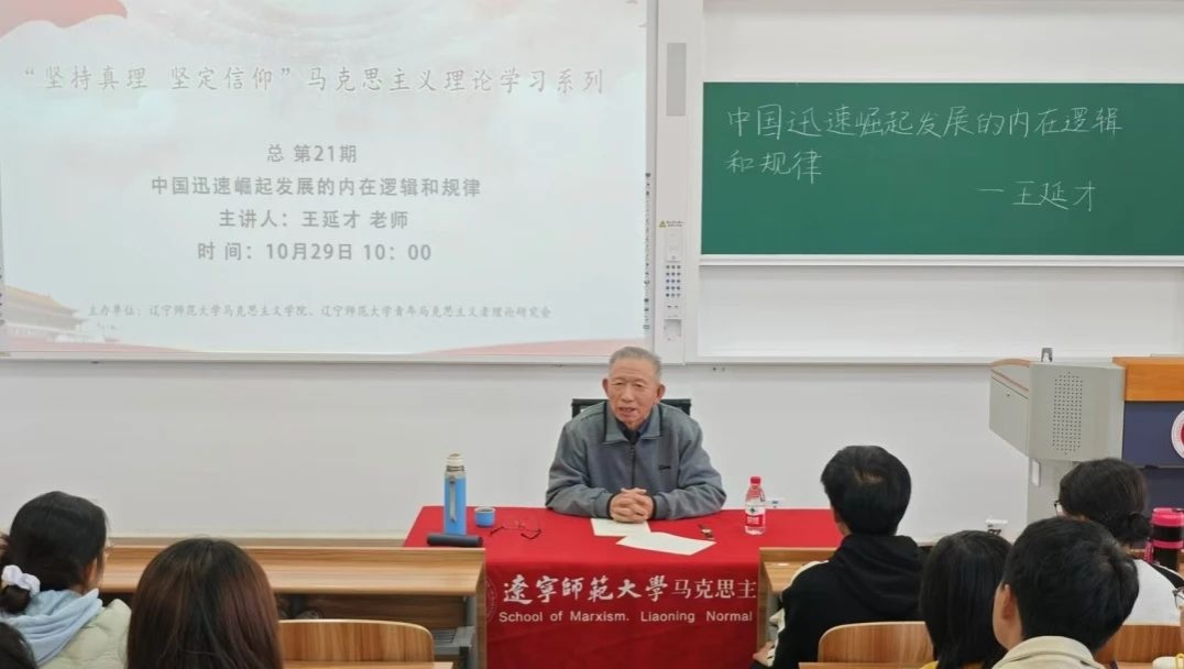 随后,王延才老师从牢记历史、制度优势、理论创新和全面深化改革四个方面详细介绍了中国崛起发展所体现的内在逻辑和规律,结合中国近代以来的历史经验,运用理论与实践发展相结合的方式,强调中国发展的制度优势,分析了中国共产党的领导、依靠人民服务人民和集中力量办大事的重要意义。不仅如此,王延才老师还具体讲解了三大理论体系的重要战略地位,生动地展现了思想引领的辉煌成果。